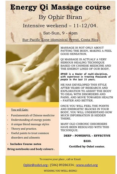 Ophir Biran is offering a informative intensive 2 day course on Chi Energy Massage.