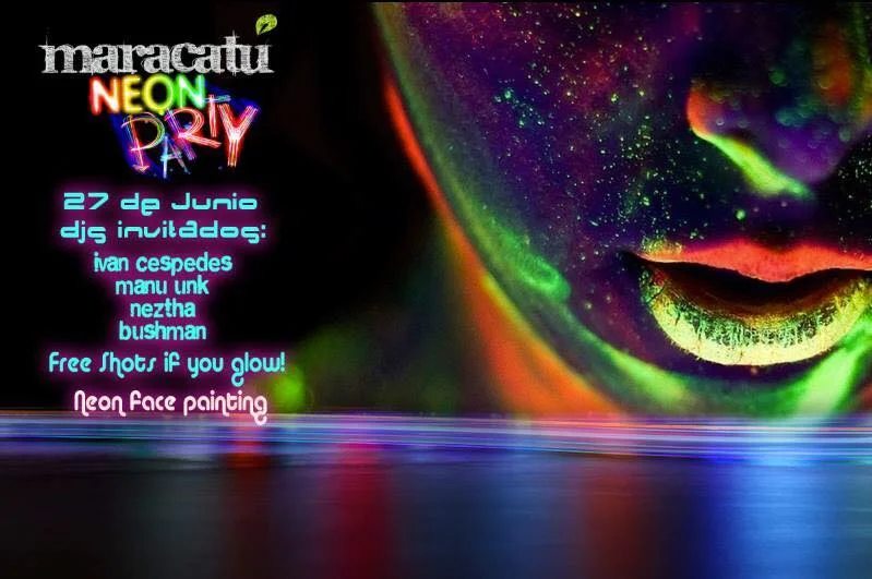 Join us at Maracatu, Saturday the 27th for a neon party and get a free shot if you show & glow!