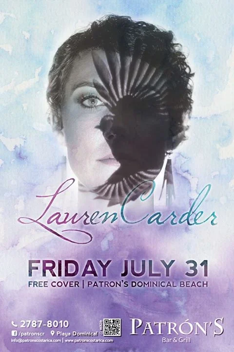 Lauren Carder performs tonight at Patron's in Dominical. Come and enjoy her sultry, velvety sounds starting at 7 pm! No cover charge!