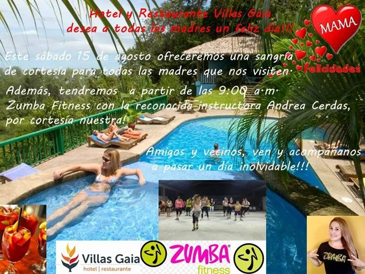 Join us for a Mother's Day Celebration and free Zumba this Saturday, August 15th at Hotel | Restaurant Villas Gaia!