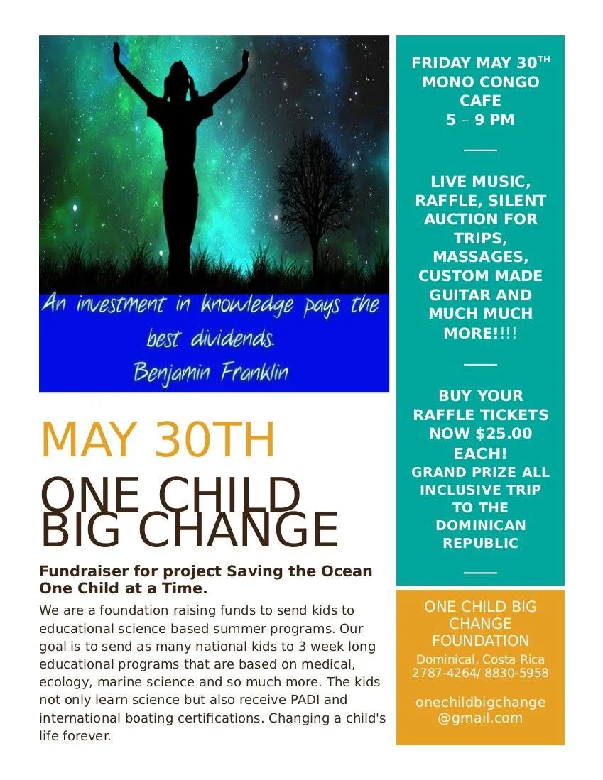 Join us to raise funds to send kids to educational summer programs, changing a young mind forever and opening up possiblities for their future and ours. We will be having a raffle and silent auction for trips to Spain, Hawaii, Orlando and NYC. To buy your raffle tickets please contact Tiffany Young @ 2787-4264 or kntyoung@gmail.com.