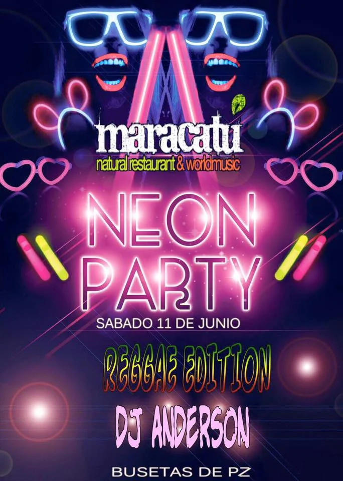 Neon Party At Maracatu Saturday, June 11, 2016 10:00 PM 10:00 PM 22:00 22:00 Maracatu Dominical (map) Google Calendar ICS Neon Party - Reggae EditionAt Maracatu this Saturday Night!