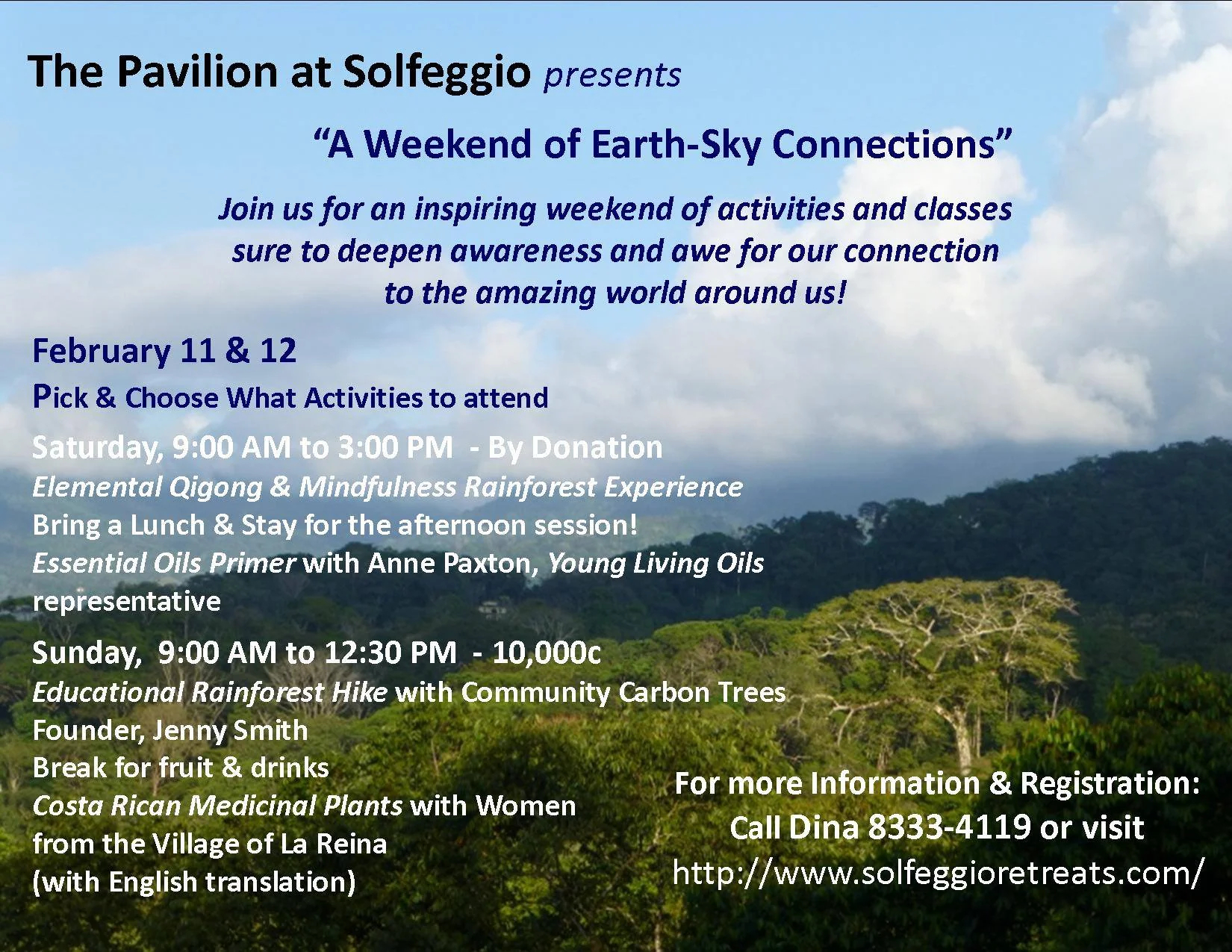 Sunday is 10,000c for the morning's activities with fruit & drinks. Please let us know if you intend to attend. Gracias! http://www.solfeggioretreats.com/