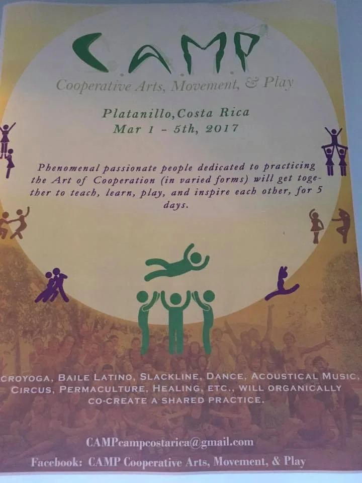 Teachers, artists, and leaders, in fields such as: Acroyoga, Baile Latino, Dance, Acoustical Music, Circus, Permaculture, Healing, etc., will organically co-create a shared practice. Experimenting with practical/functional cooperation skills, attitudes, and techniques. This years' classes will be heavily oriented towards physical movement/activity and Acroyoga.