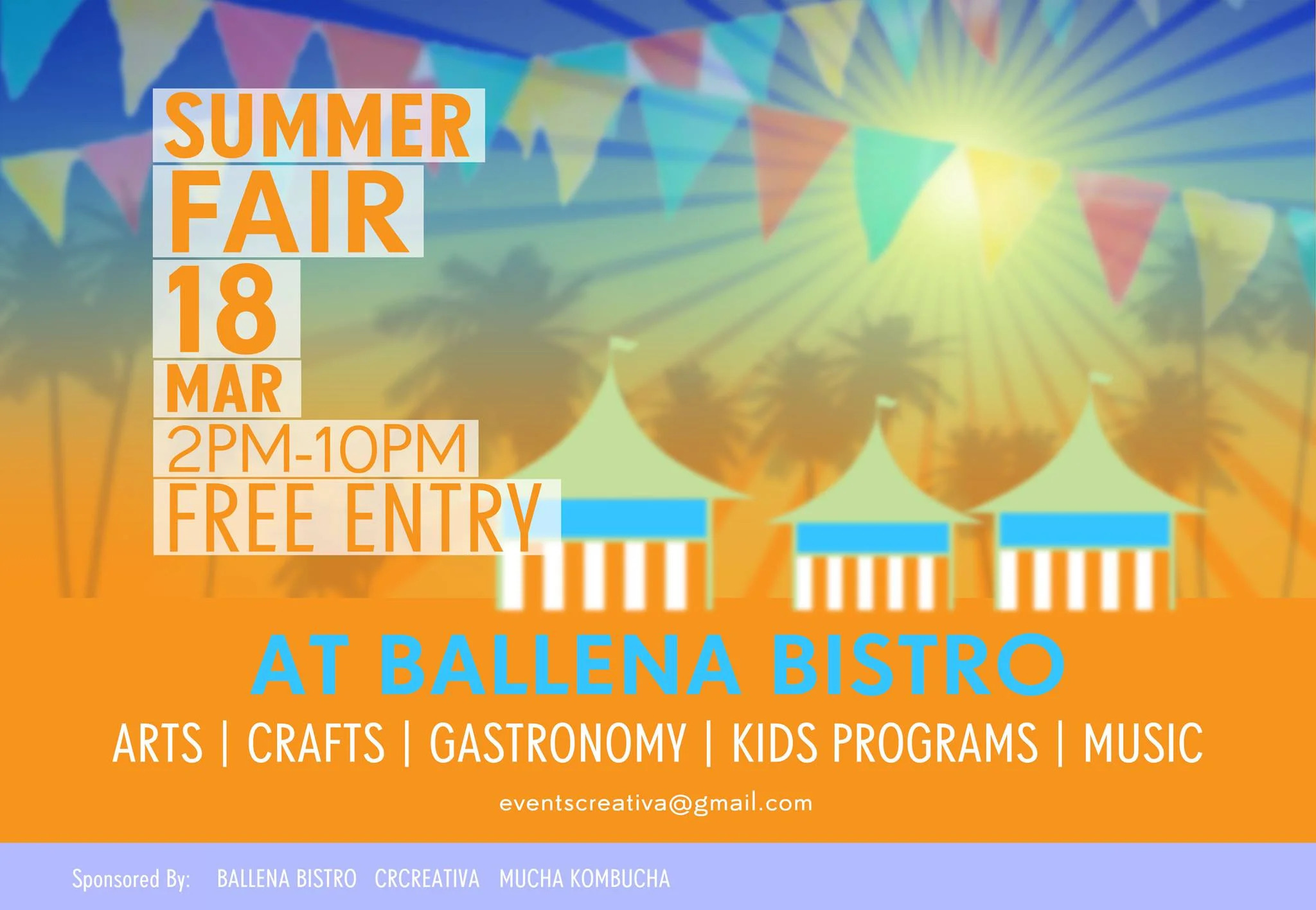 Summer Fair featuring Costa Rican small businesses and products, clothing, household items, crafts, foods, artisans, and more! Family friendly and free entry!