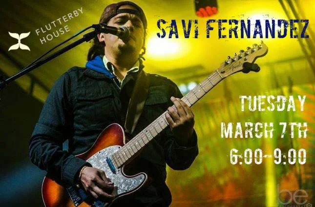 Stop by the Flutterby for Taco Tuesday and enjoy live music with Savi Fernandez. Food served from 6:00-8:00 and music until 9:00.