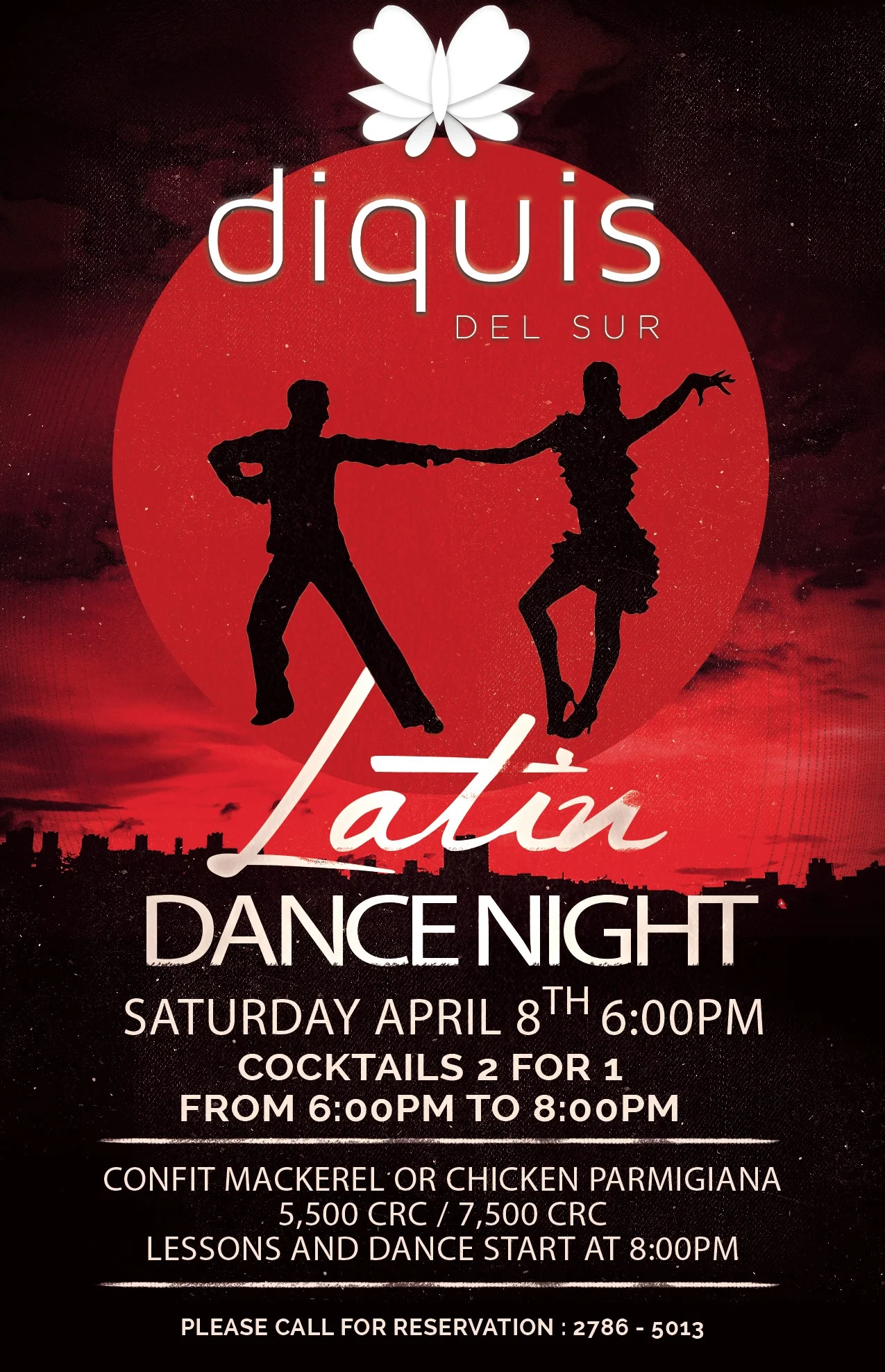 Cocktails start at 6 pm, lessons and dance start at 8pm!