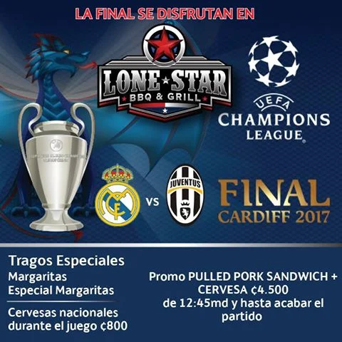 Champions League Final!! Come to Lone Star BBQ & Grill and enjoy the game with drink and food specials!